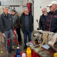 Over twenty club members & friends received an “education” on synchros, planetary gears, and Ken’s recommended transmission fill (engine oil vs. gear oil)